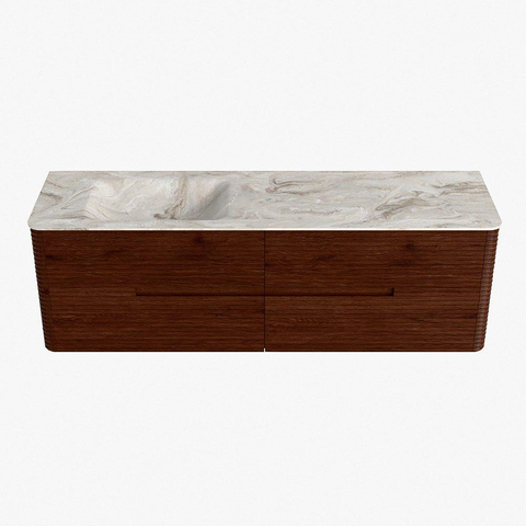 Mondiaz CIRO-DLUX Badkamermeubelset - 160x45x50cm - Solid surface wastafel Frappe - 1 wasbak Links - 1 kraangat - 4 lades - Ruby