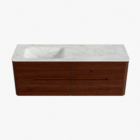 Mondiaz CIRO-DLUX Badkamermeubelset - 140x45x50cm - Solid surface wastafel Opalo - 1 wasbak Links - 1 kraangat - 4 lades - Ruby