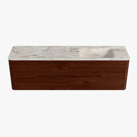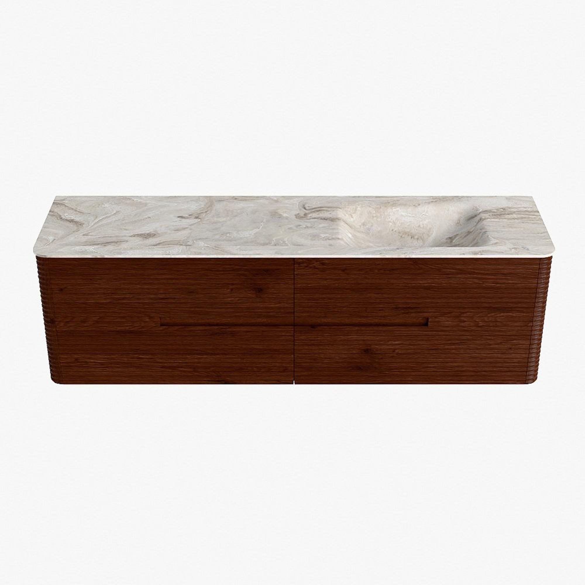 Mondiaz CIRO-DLUX Badkamermeubelset - 170x45x50cm - Solid surface wastafel Frappe - 1 wasbak Rechts - 1 kraangat - 4 lades - Ruby