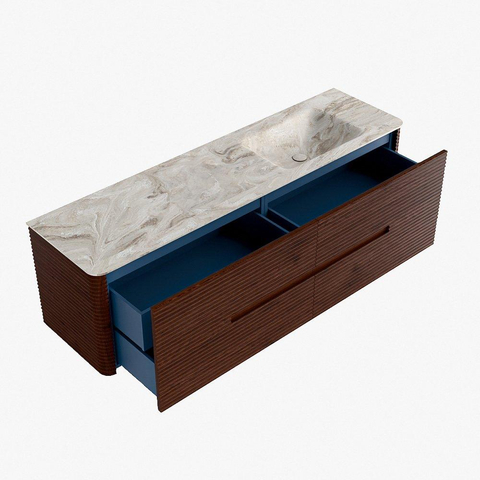 Functioneel gemak is een essentieel onderdeel van de CIRO-serie. Het meubel beschikt over een royale lade met extra binnen lade, ideaal voor het overzichtelijk opbergen van alle dagelijkse badkamerartikelen. Dankzij de geïntegreerde greep en het soft close-mechanisme blijft het front rustig, strak en elegant.