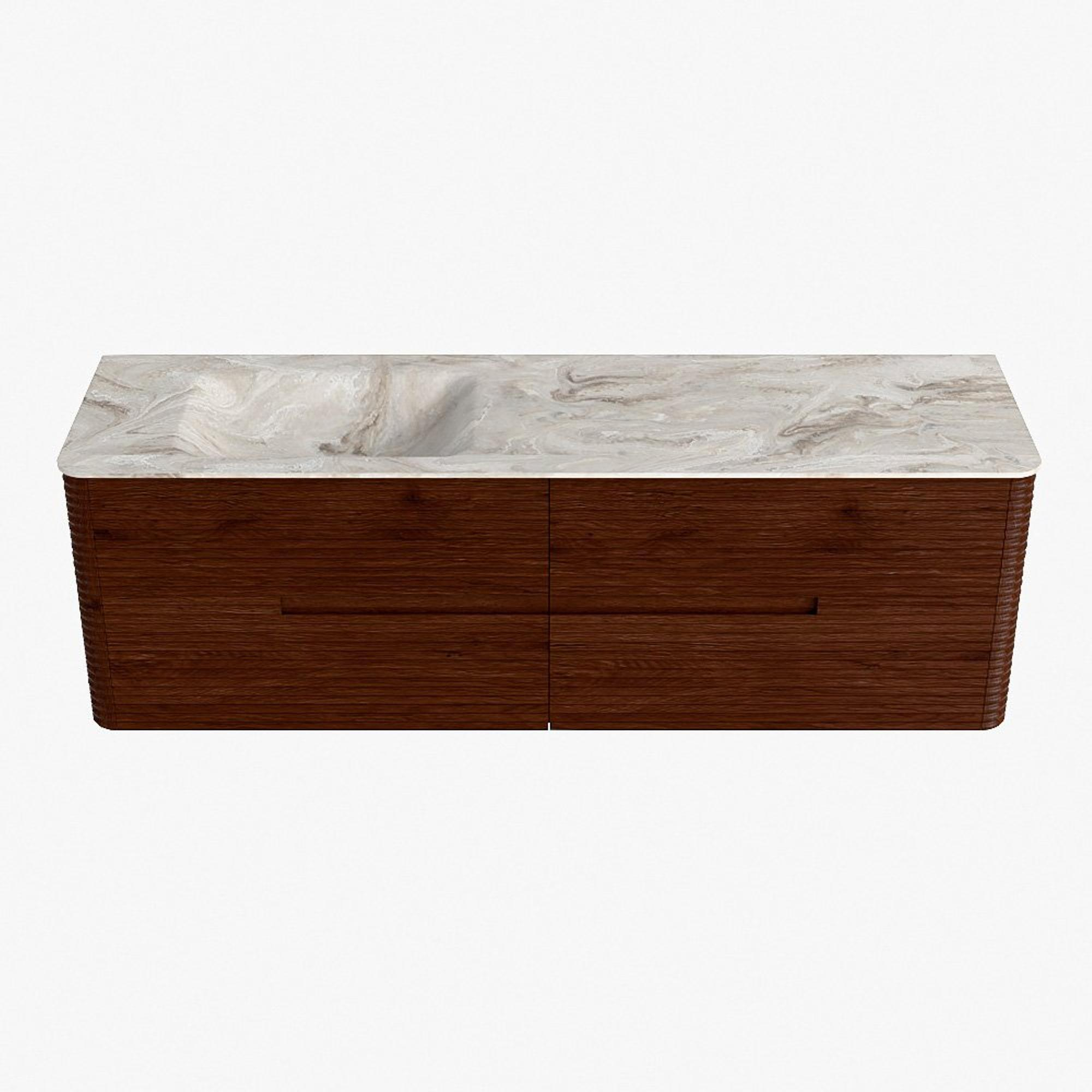 Mondiaz CIRO-DLUX Badkamermeubelset - 160x45x50cm - Solid surface wastafel Frappe - 1 wasbak Links - zonder kraangaten - 4 lades - Ruby