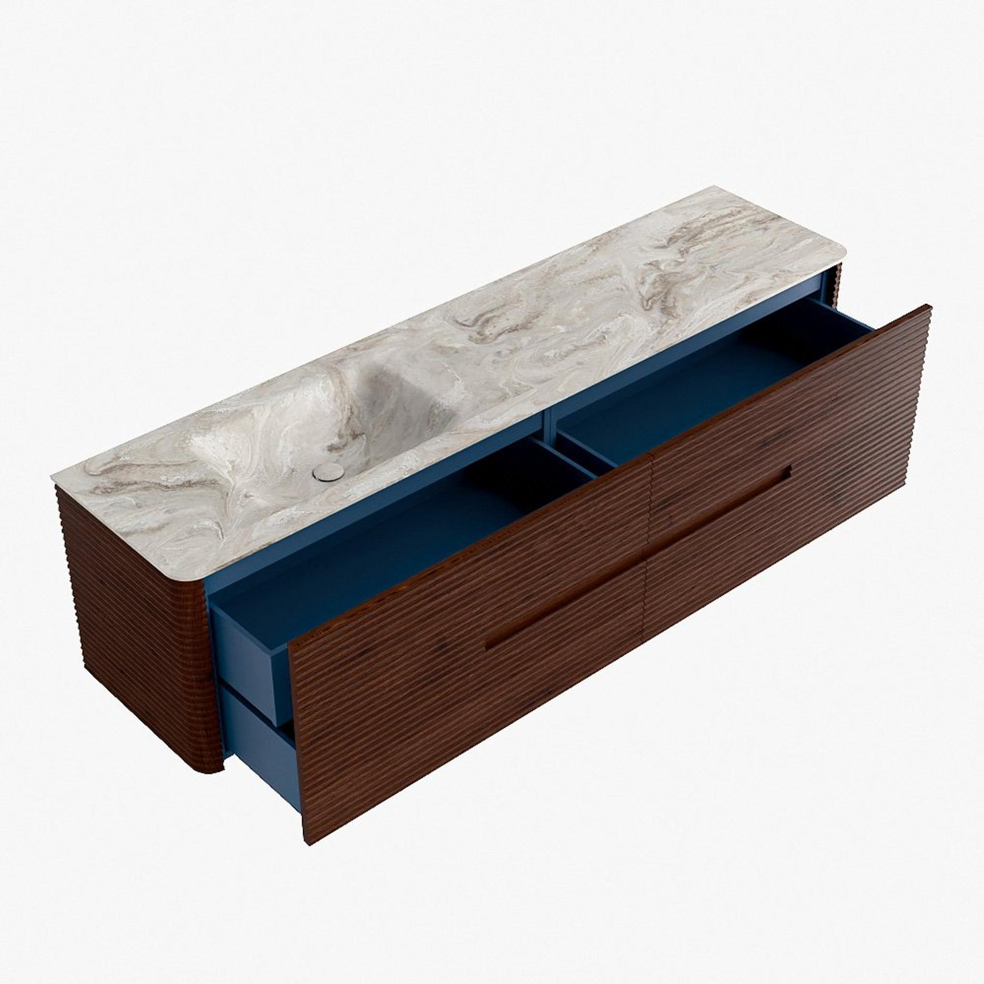 Functioneel gemak is een essentieel onderdeel van de CIRO-serie. Het meubel beschikt over een royale lade met extra binnen lade, ideaal voor het overzichtelijk opbergen van alle dagelijkse badkamerartikelen. Dankzij de geïntegreerde greep en het soft close-mechanisme blijft het front rustig, strak en elegant.