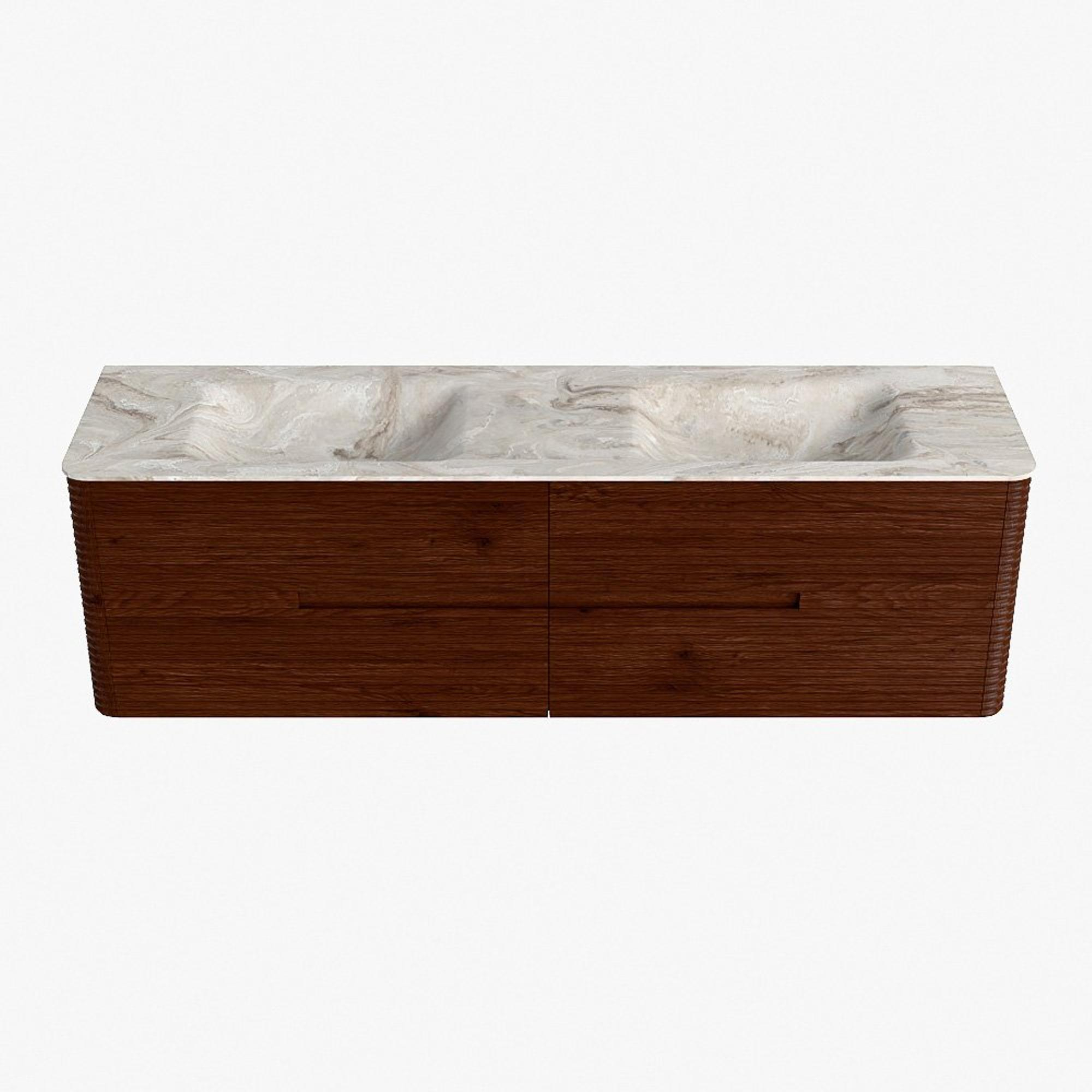 Mondiaz CIRO-DLUX Badkamermeubelset - 170x45x50cm - Solid surface wastafel Frappe - 2 wasbak Dubbel - zonder kraangaten - 4 lades - Ruby