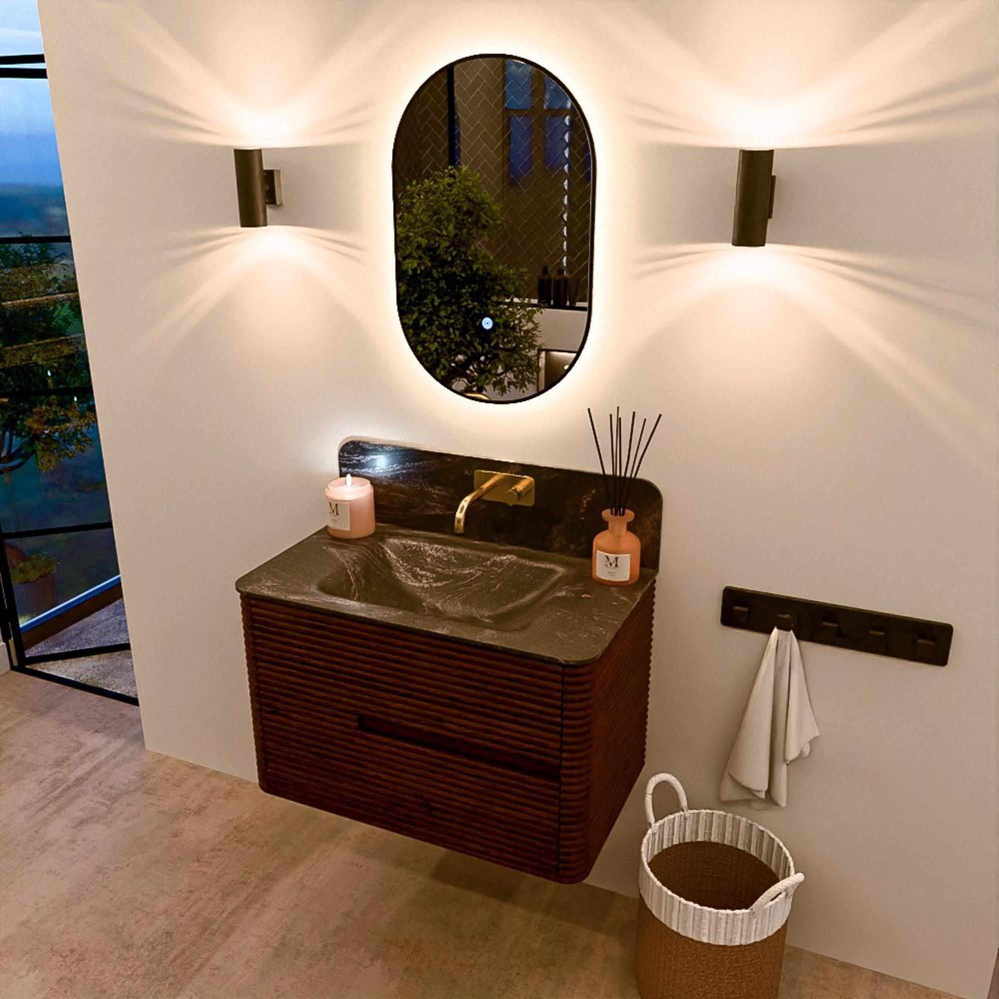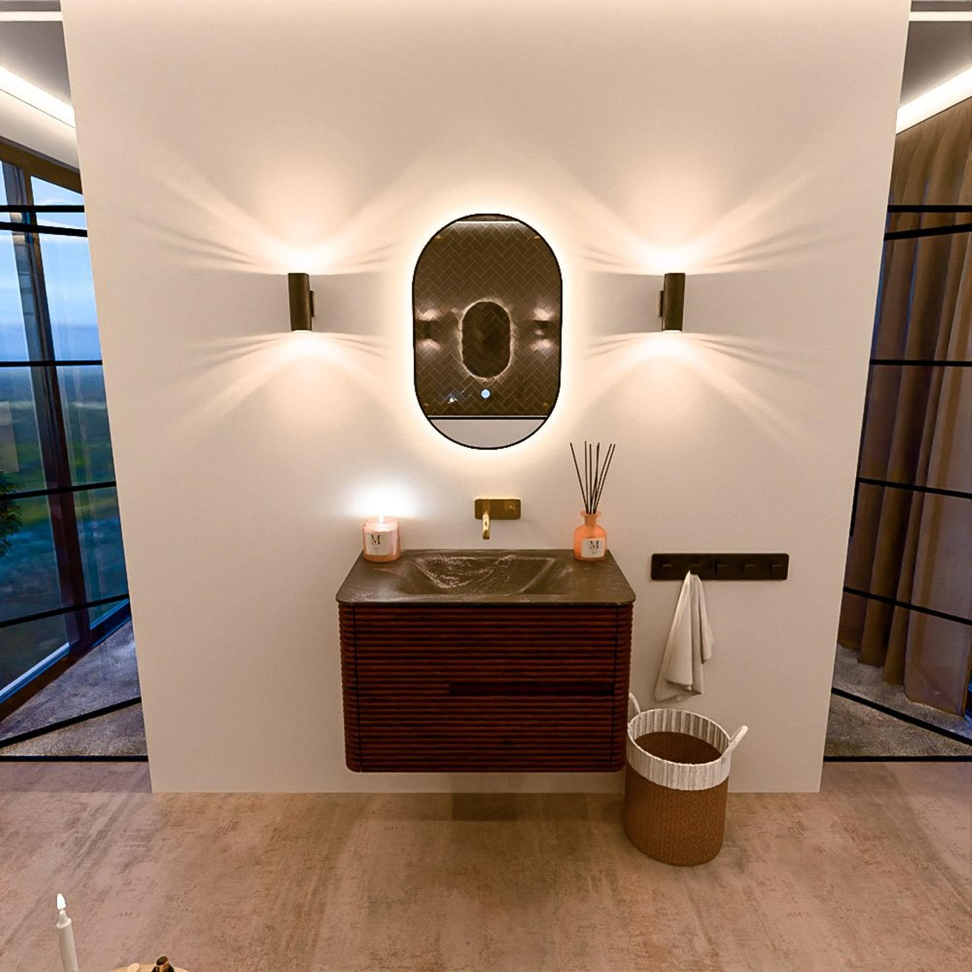 Mondiaz CIRO-DLUX Badkamermeubelset - 80x45x50cm - Solid surface wastafel Lava - 1 wasbak Midden - zonder kraangaten - 2 lades - Ruby