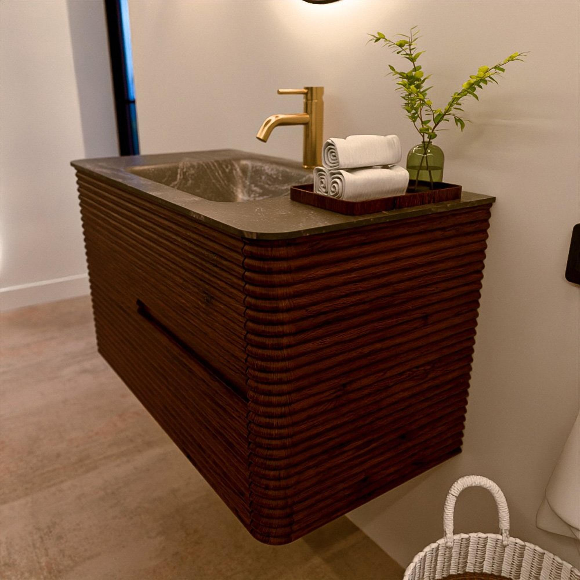 Mondiaz CIRO-DLUX Badkamermeubelset - 90x45x50cm - Solid surface wastafel Lava - 1 wasbak Midden - 1 kraangat - 2 lades - Ruby