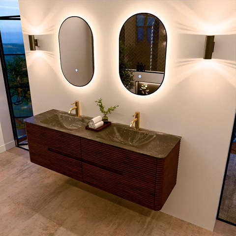 Mondiaz CIRO-DLUX Badkamermeubelset - 160x45x50cm - Solid surface wastafel Lava - 2 wasbak Dubbel - 2 kraangaten - 4 lades - Ruby