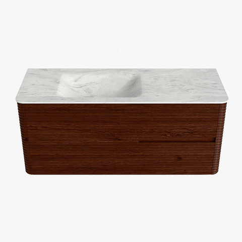 Mondiaz CIRO-DLUX Badkamermeubelset - 120x45x50cm - Solid surface wastafel Opalo - 1 wasbak Links - zonder kraangaten - 2 lades - Ruby