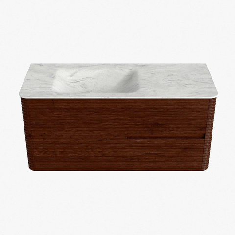 Mondiaz CIRO-DLUX Badkamermeubelset - 110x45x50cm - Solid surface wastafel Opalo - 1 wasbak Links - 1 kraangat - 2 lades - Ruby