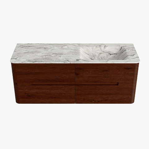 Mondiaz CIRO-DLUX Badkamermeubelset - 130x45x50cm - Solid surface wastafel Glace - 1 wasbak Rechts - 1 kraangat - 4 lades - Ruby
