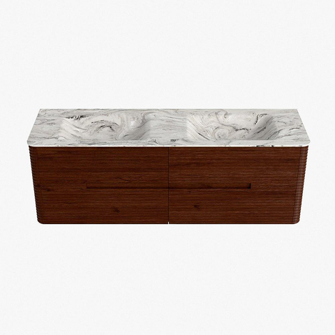 Mondiaz CIRO-DLUX Badkamermeubelset - 150x45x50cm - Solid surface wastafel Glace - 2 wasbak Dubbel - zonder kraangaten - 4 lades - Ruby