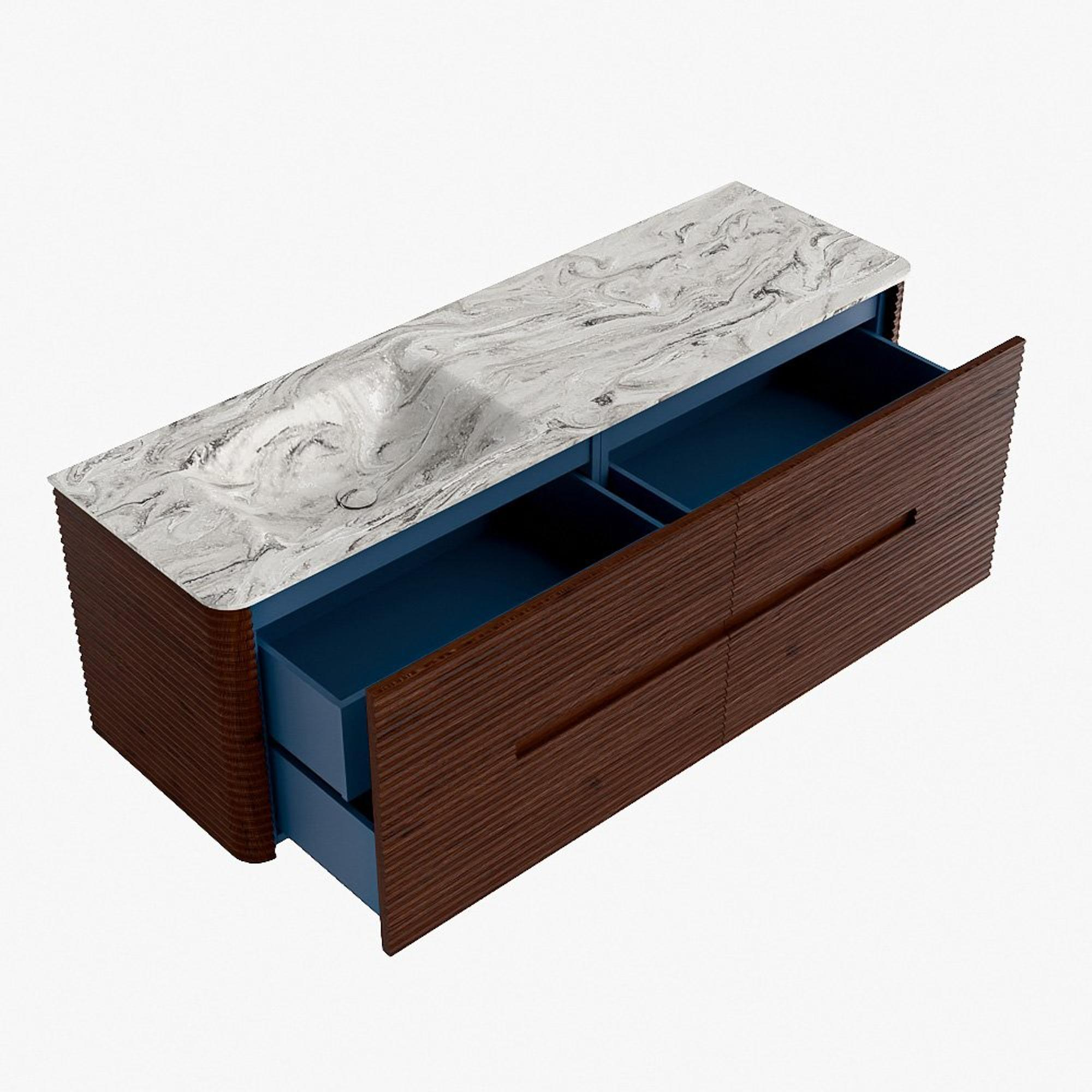 Functioneel gemak is een essentieel onderdeel van de CIRO-serie. Het meubel beschikt over een royale lade met extra binnen lade, ideaal voor het overzichtelijk opbergen van alle dagelijkse badkamerartikelen. Dankzij de geïntegreerde greep en het soft close-mechanisme blijft het front rustig, strak en elegant.
