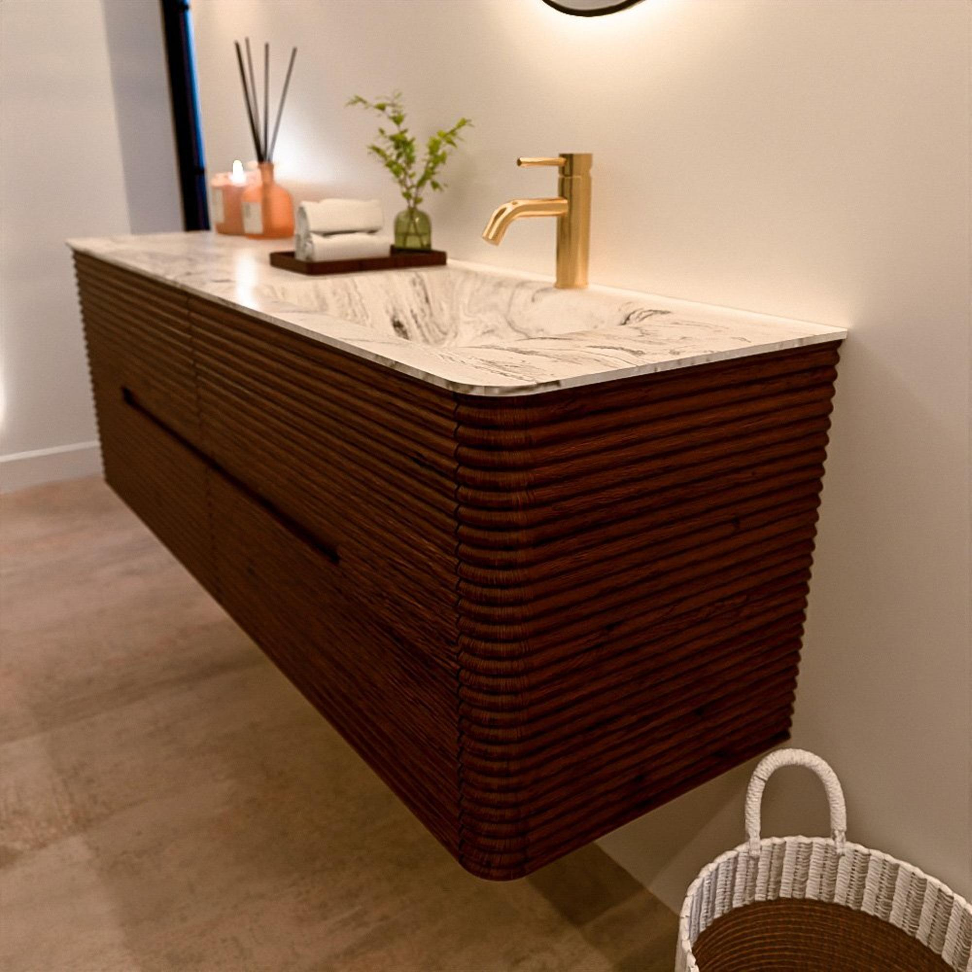 Het CIRO-DLUX badkamermeubel is ontwikkeld voor wie kiest voor modern design, natuurlijke materialen en hoogwaardige functionaliteit. Met maatvoeringen van 70 cm tot 190 cm past de CIRO-serie moeiteloos in zowel compacte badkamers als royale designruimtes. Elk meubel is een uitgebalanceerde combinatie van esthetiek, ambacht en duurzame kwaliteit.
