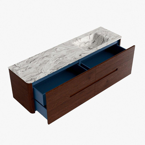 Functioneel gemak is een essentieel onderdeel van de CIRO-serie. Het meubel beschikt over een royale lade met extra binnen lade, ideaal voor het overzichtelijk opbergen van alle dagelijkse badkamerartikelen. Dankzij de geïntegreerde greep en het soft close-mechanisme blijft het front rustig, strak en elegant.