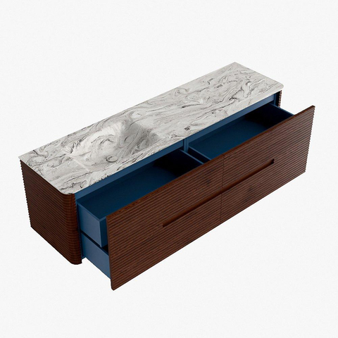 Functioneel gemak is een essentieel onderdeel van de CIRO-serie. Het meubel beschikt over een royale lade met extra binnen lade, ideaal voor het overzichtelijk opbergen van alle dagelijkse badkamerartikelen. Dankzij de geïntegreerde greep en het soft close-mechanisme blijft het front rustig, strak en elegant.