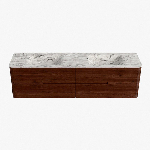 Mondiaz CIRO-DLUX Badkamermeubelset - 180x45x50cm - Solid surface wastafel Glace - 2 wasbak Dubbel - zonder kraangaten - 4 lades - Ruby