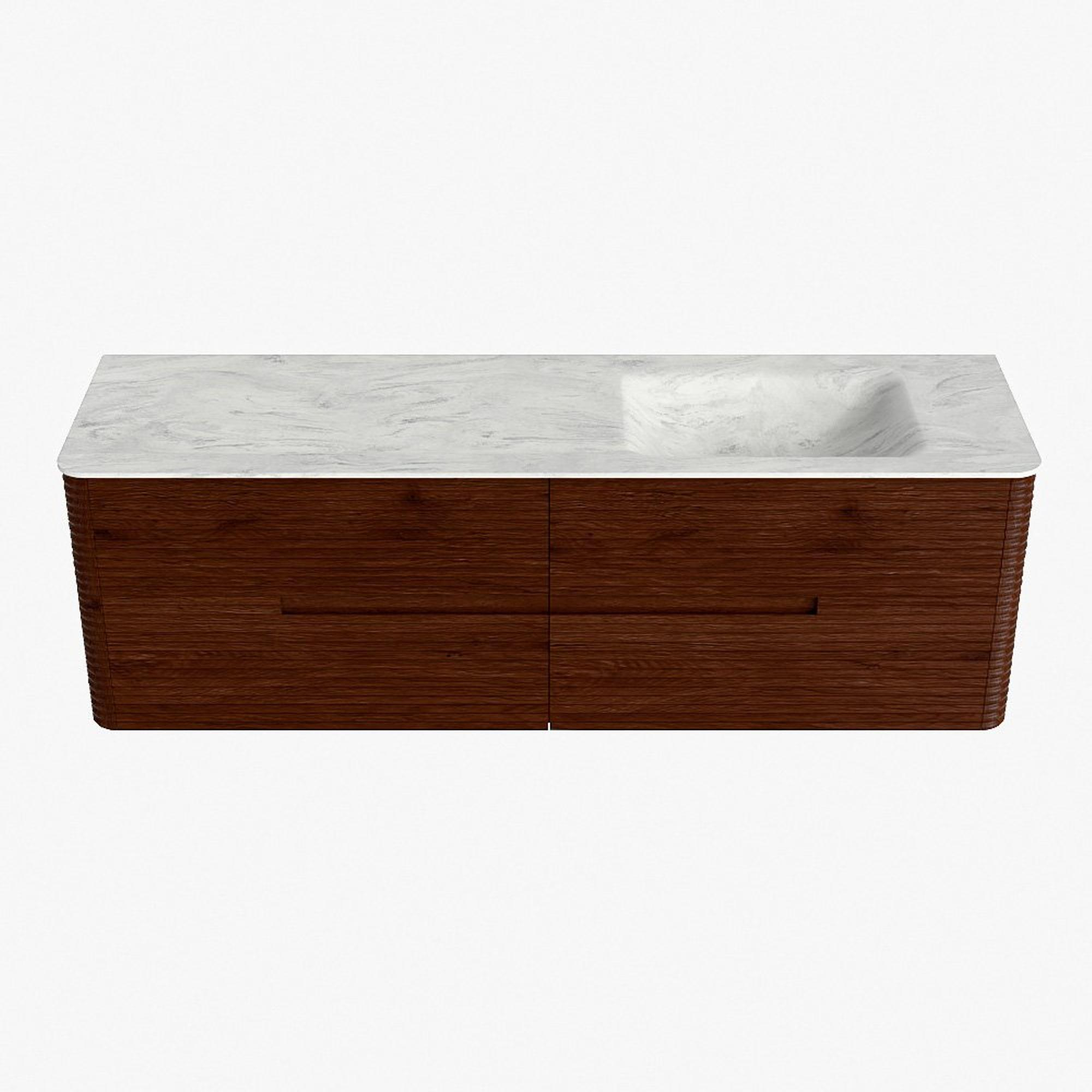 Mondiaz CIRO-DLUX Badkamermeubelset - 160x45x50cm - Solid surface wastafel Opalo - 1 wasbak Rechts - zonder kraangaten - 4 lades - Ruby