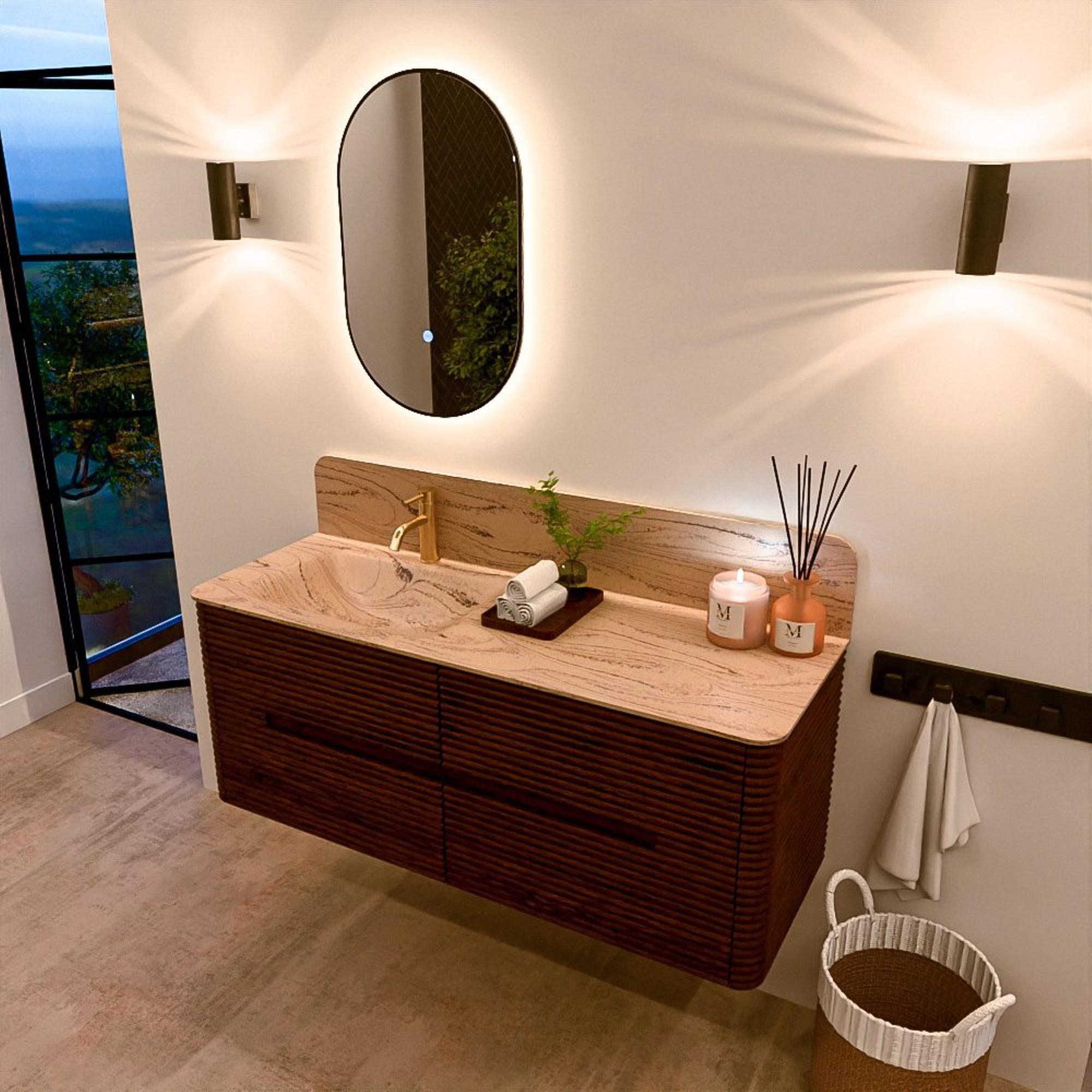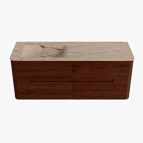 Mondiaz CIRO-DLUX Badkamermeubelset - 130x45x50cm - Solid surface wastafel Arena - 1 wasbak Links - 1 kraangat - 4 lades - Ruby