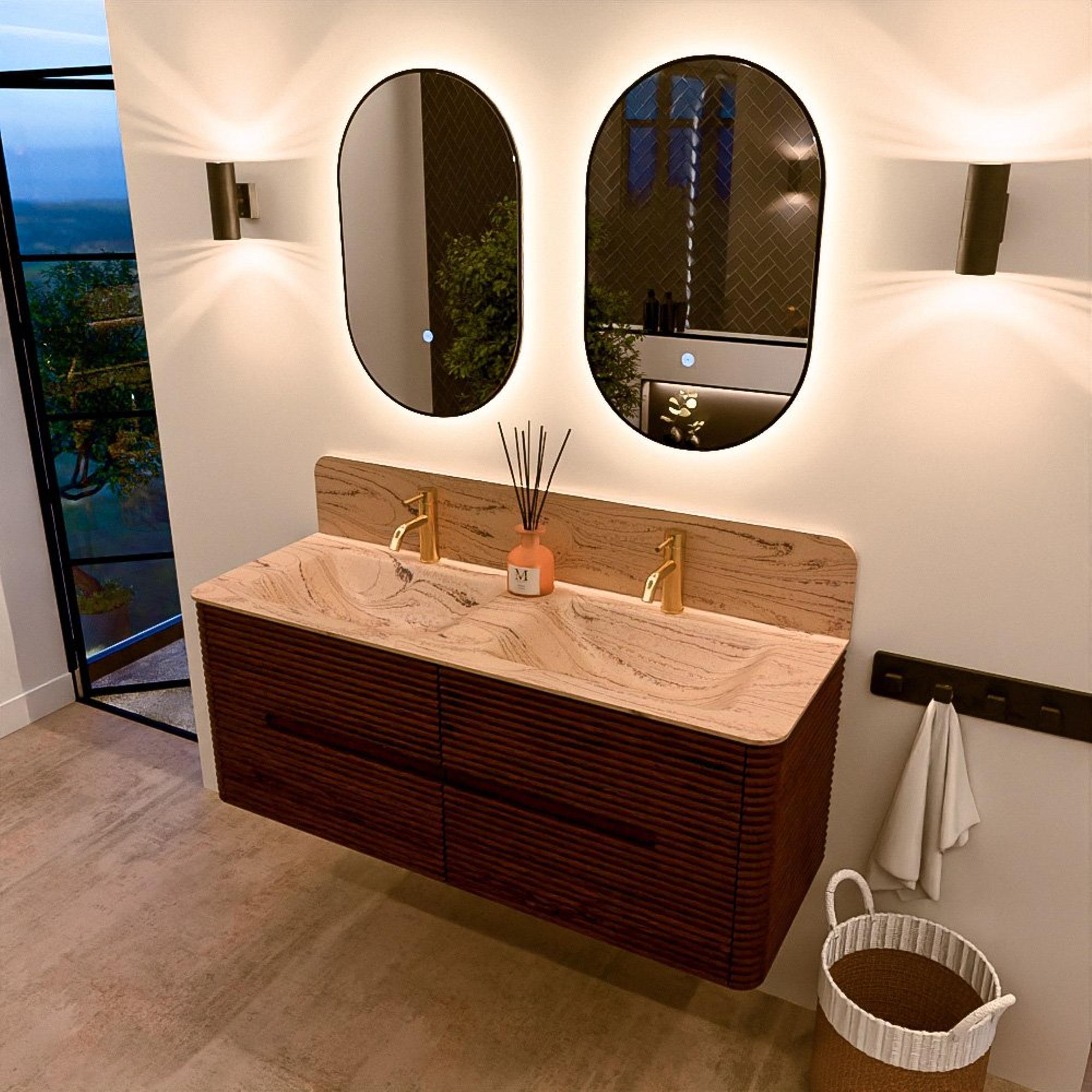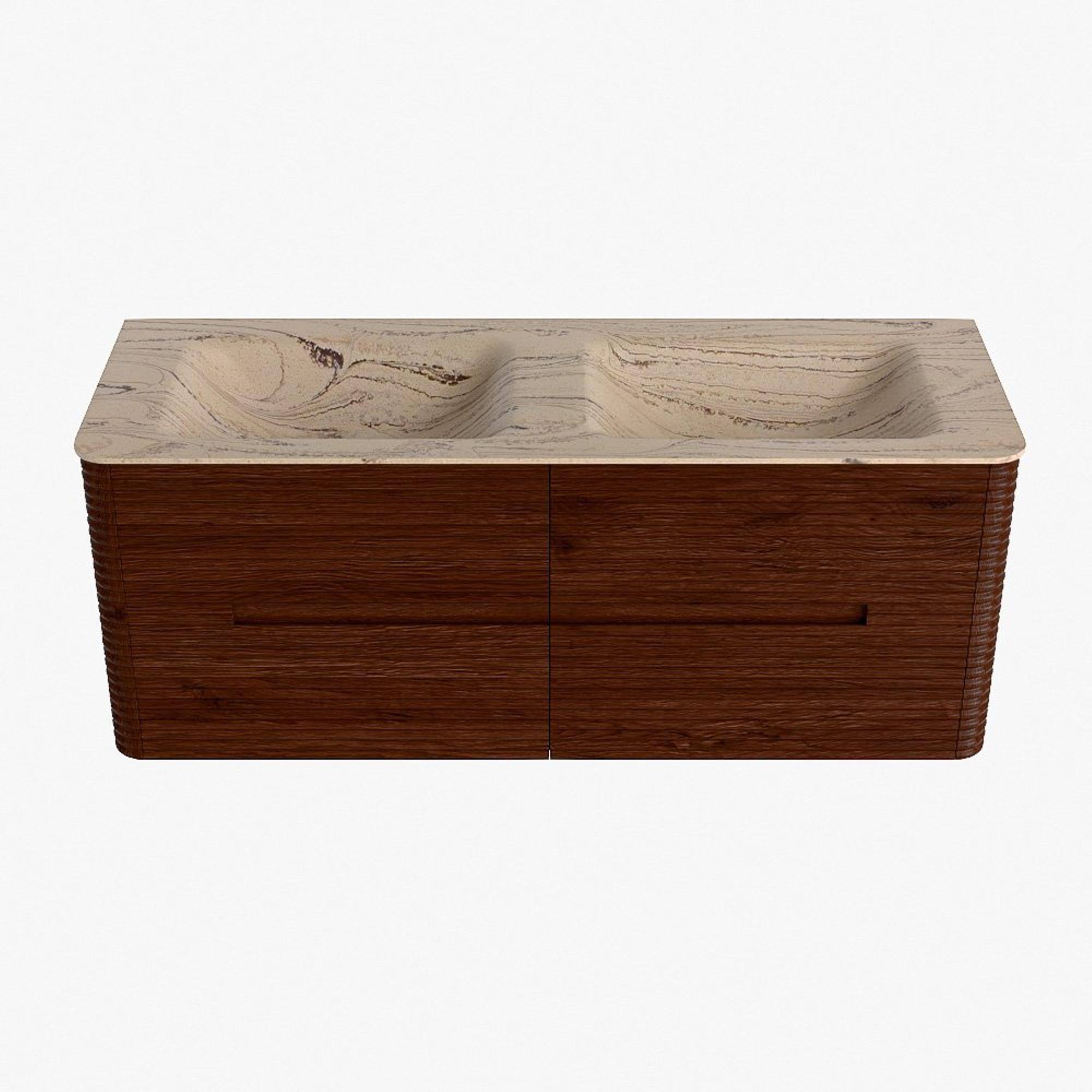 Mondiaz CIRO-DLUX Badkamermeubelset - 130x45x50cm - Solid surface wastafel Arena - 2 wasbak Dubbel - 2 kraangaten - 4 lades - Ruby