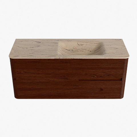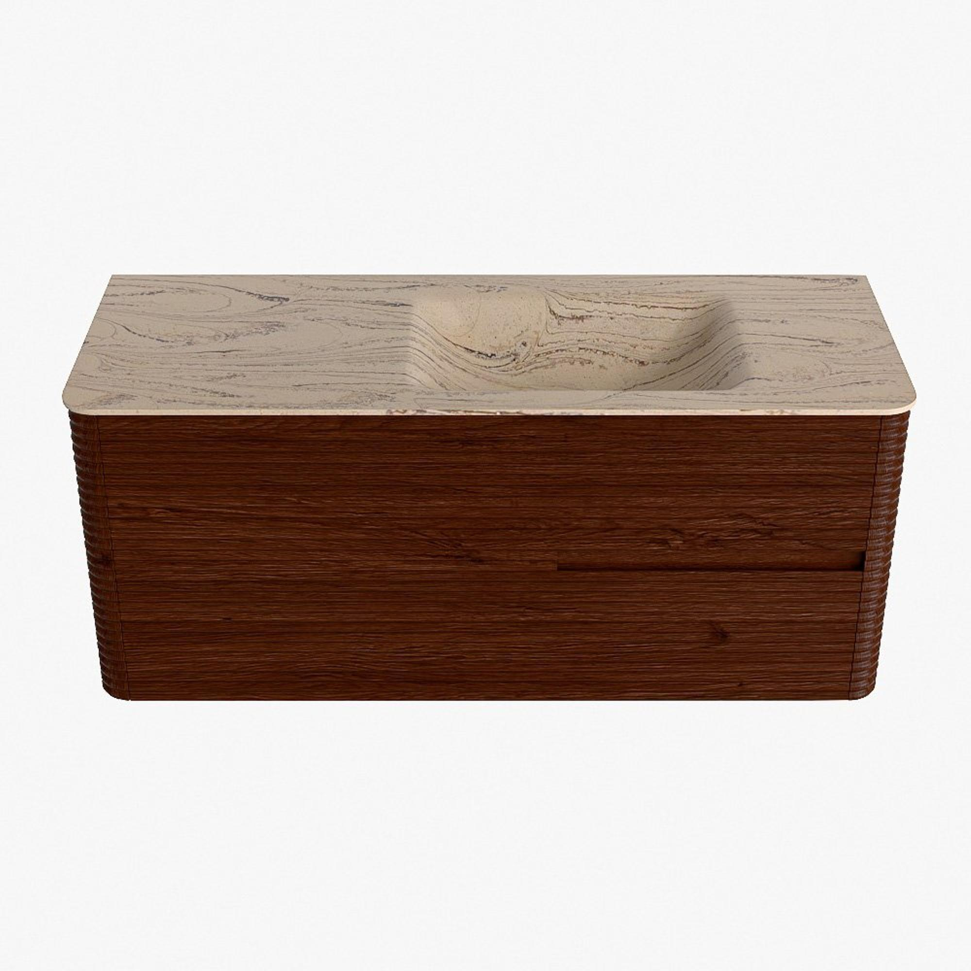 Mondiaz CIRO-DLUX Badkamermeubelset - 120x45x50cm - Solid surface wastafel Arena - 1 wasbak Rechts - zonder kraangaten - 2 lades - Ruby