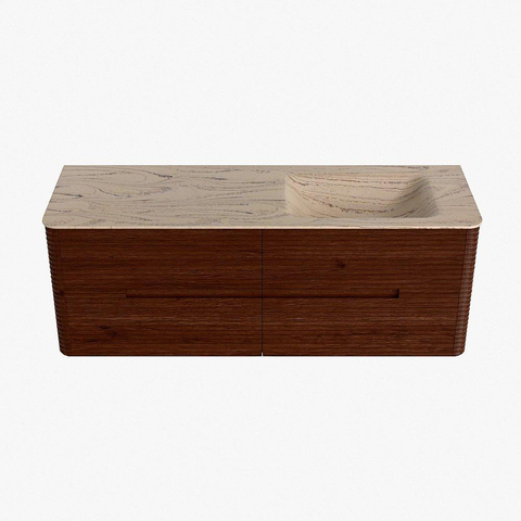 Mondiaz CIRO-DLUX Badkamermeubelset - 140x45x50cm - Solid surface wastafel Arena - 1 wasbak Rechts - 1 kraangat - 4 lades - Ruby