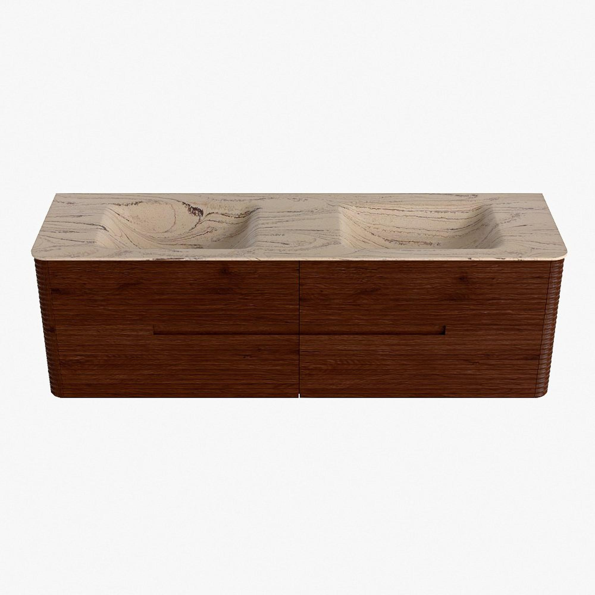 Mondiaz CIRO-DLUX Badkamermeubelset - 160x45x50cm - Solid surface wastafel Arena - 2 wasbak Dubbel - zonder kraangaten - 4 lades - Ruby
