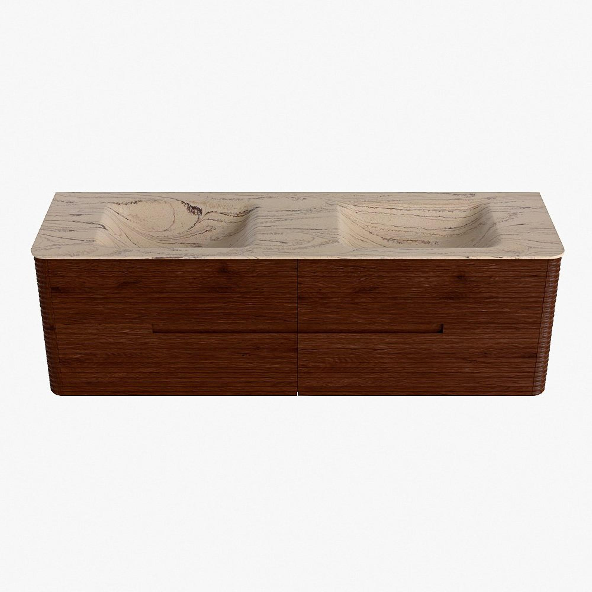Mondiaz CIRO-DLUX Badkamermeubelset - 160x45x50cm - Solid surface wastafel Arena - 2 wasbak Dubbel - 2 kraangaten - 4 lades - Ruby