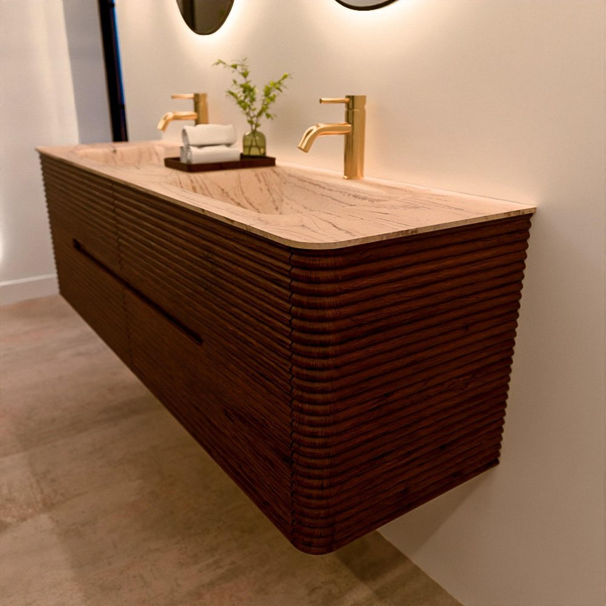 Het CIRO-DLUX badkamermeubel is ontwikkeld voor wie kiest voor modern design, natuurlijke materialen en hoogwaardige functionaliteit. Met maatvoeringen van 70 cm tot 190 cm past de CIRO-serie moeiteloos in zowel compacte badkamers als royale designruimtes. Elk meubel is een uitgebalanceerde combinatie van esthetiek, ambacht en duurzame kwaliteit.