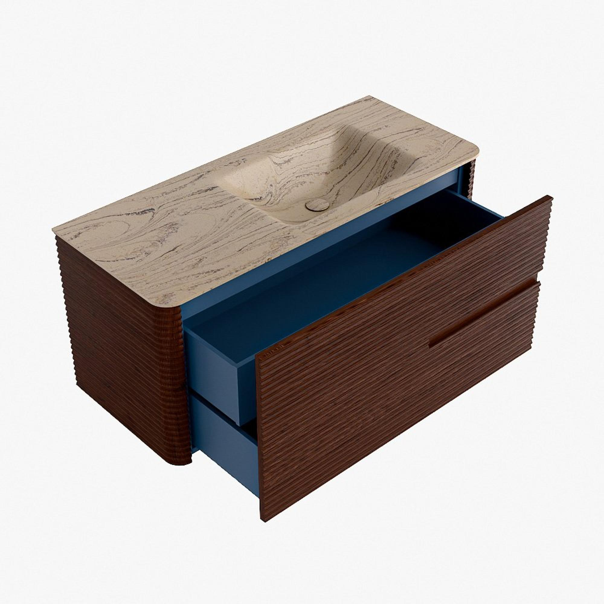Mondiaz CIRO-DLUX Badkamermeubelset - 110x45x50cm - Solid surface wastafel Arena - 1 wasbak Rechts - zonder kraangaten - 2 lades - Ruby