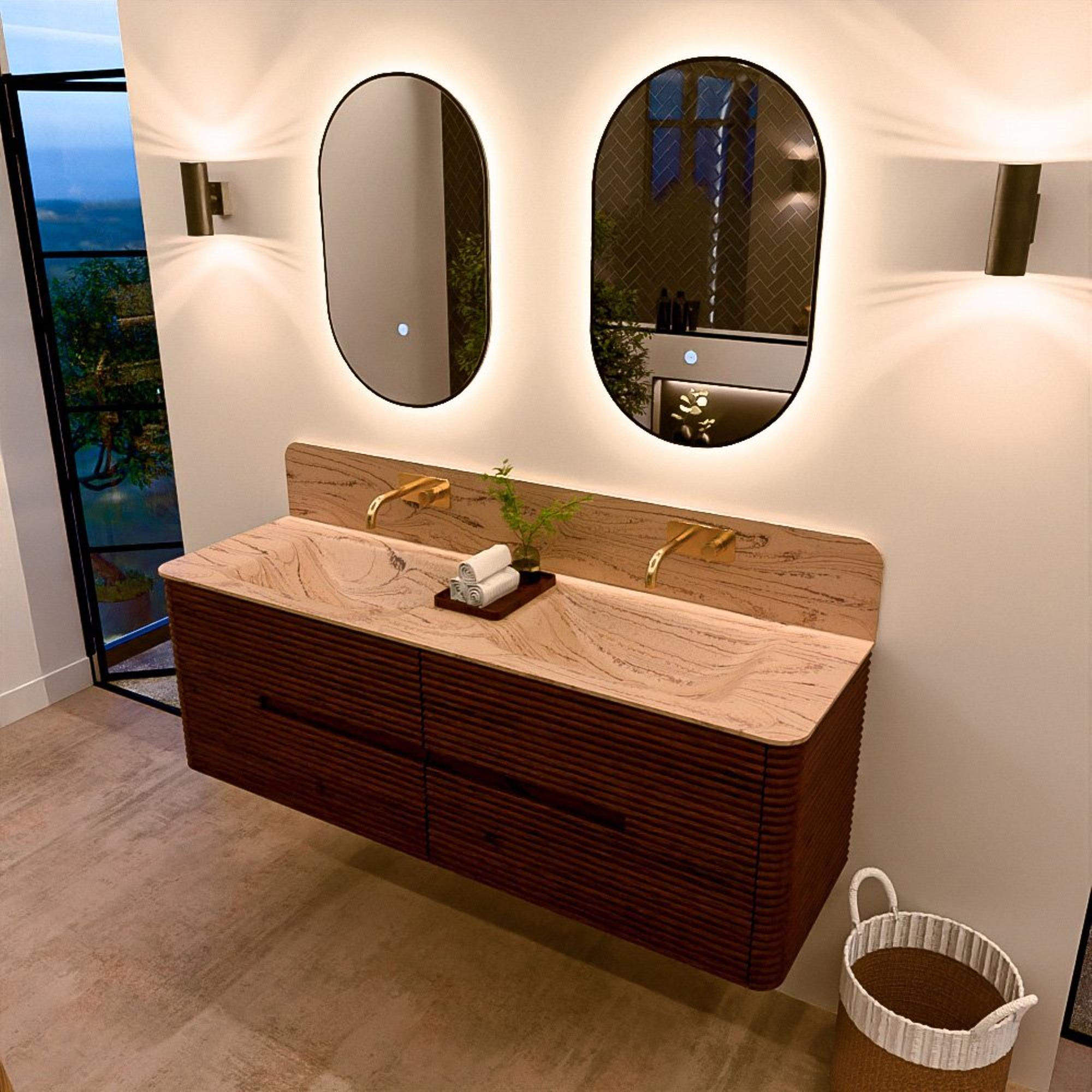 Mondiaz CIRO-DLUX Badkamermeubelset - 150x45x50cm - Solid surface wastafel Arena - 2 wasbak Dubbel - zonder kraangaten - 4 lades - Ruby