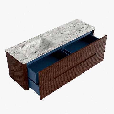Functioneel gemak is een essentieel onderdeel van de CIRO-serie. Het meubel beschikt over een royale lade met extra binnen lade, ideaal voor het overzichtelijk opbergen van alle dagelijkse badkamerartikelen. Dankzij de geïntegreerde greep en het soft close-mechanisme blijft het front rustig, strak en elegant.