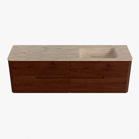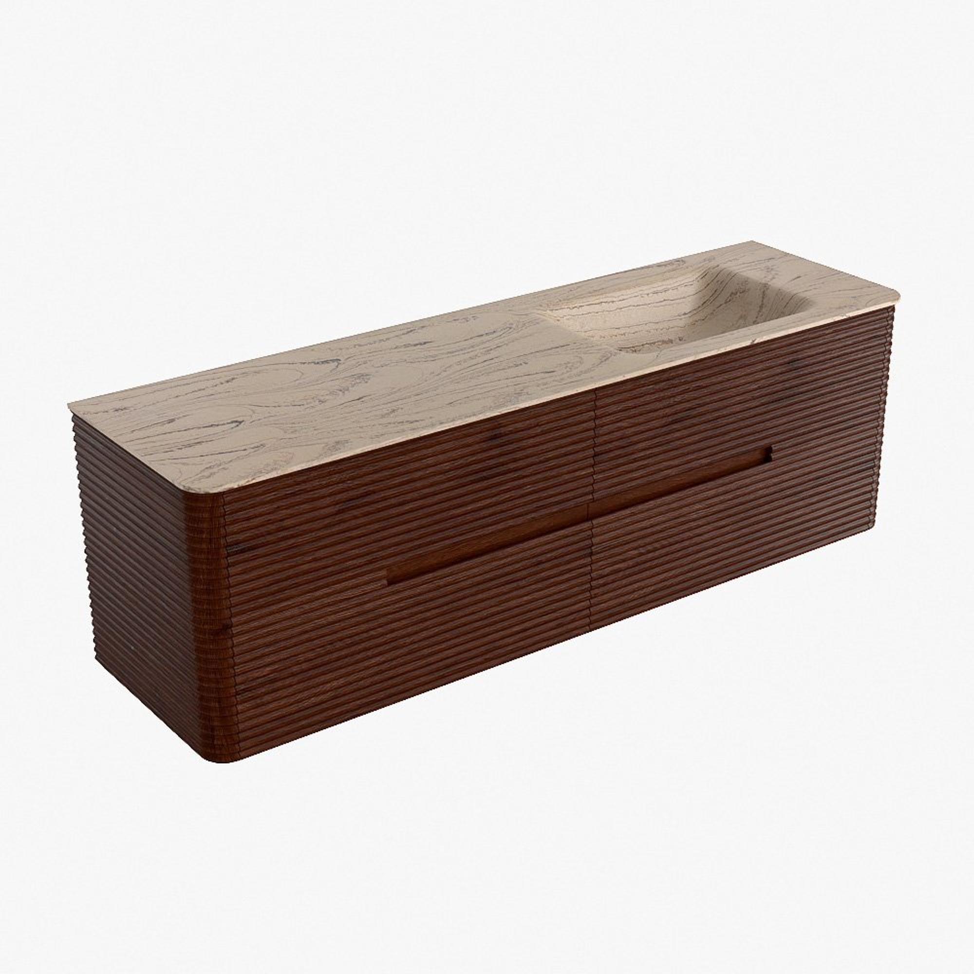 Mondiaz CIRO-DLUX Badkamermeubelset - 160x45x50cm - Solid surface wastafel Arena - 1 wasbak Rechts - zonder kraangaten - 4 lades - Ruby
