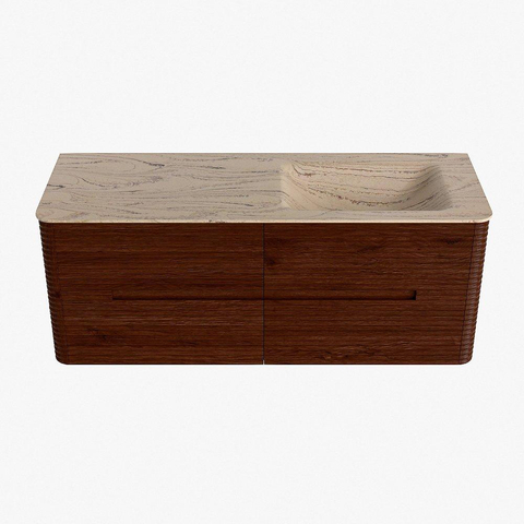 Mondiaz CIRO-DLUX Badkamermeubelset - 130x45x50cm - Solid surface wastafel Arena - 1 wasbak Rechts - zonder kraangaten - 4 lades - Ruby