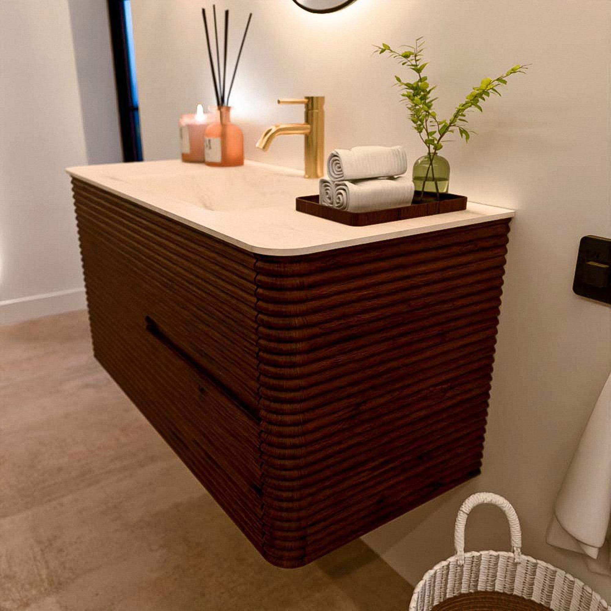 Mondiaz CIRO-DLUX Badkamermeubelset - 100x45x50cm - Solid surface wastafel Meli - 1 wasbak Midden - 1 kraangat - 2 lades - Ruby