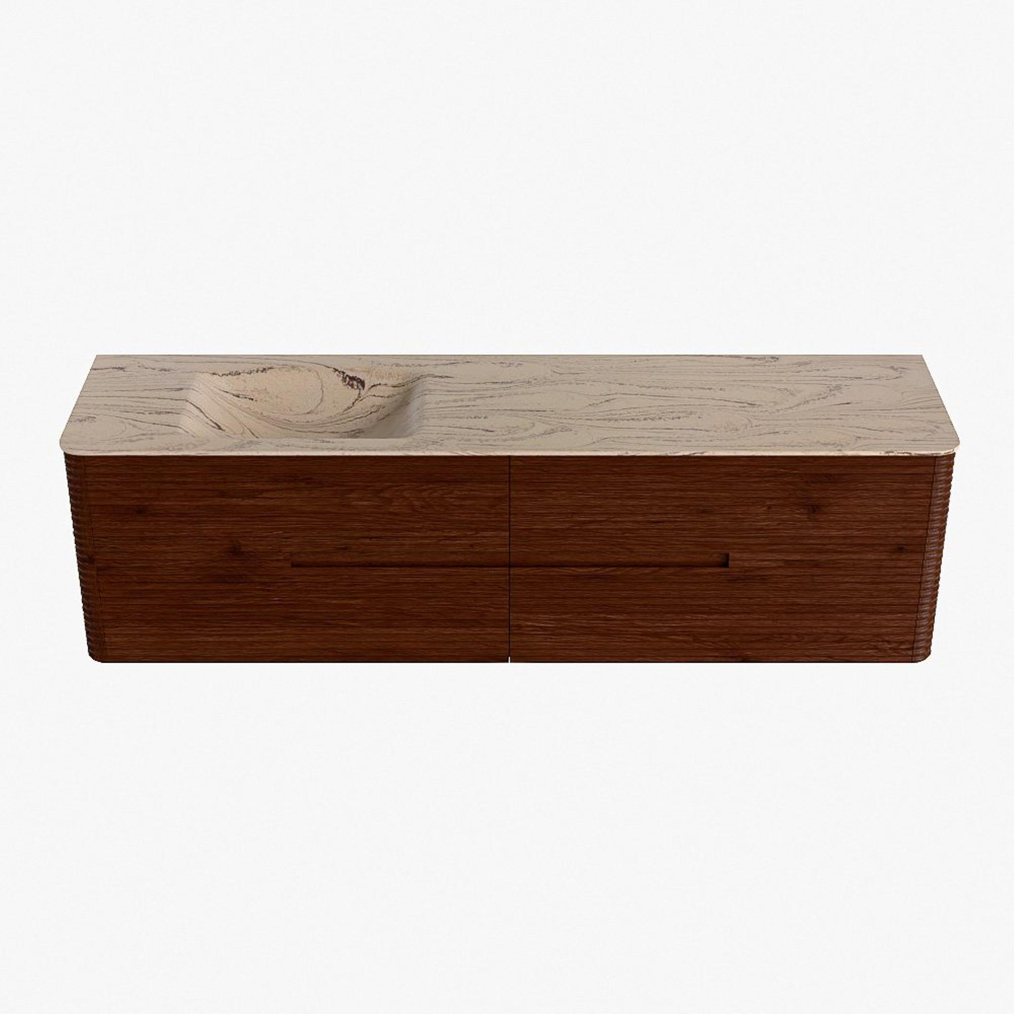 Mondiaz CIRO-DLUX Badkamermeubelset - 180x45x50cm - Solid surface wastafel Arena - 1 wasbak Links - 1 kraangat - 4 lades - Ruby