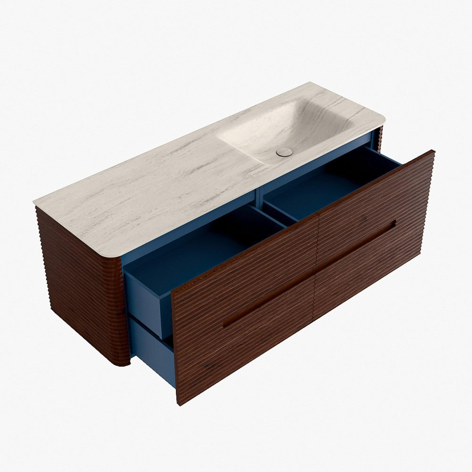 Functioneel gemak is een essentieel onderdeel van de CIRO-serie. Het meubel beschikt over een royale lade met extra binnen lade, ideaal voor het overzichtelijk opbergen van alle dagelijkse badkamerartikelen. Dankzij de geïntegreerde greep en het soft close-mechanisme blijft het front rustig, strak en elegant.