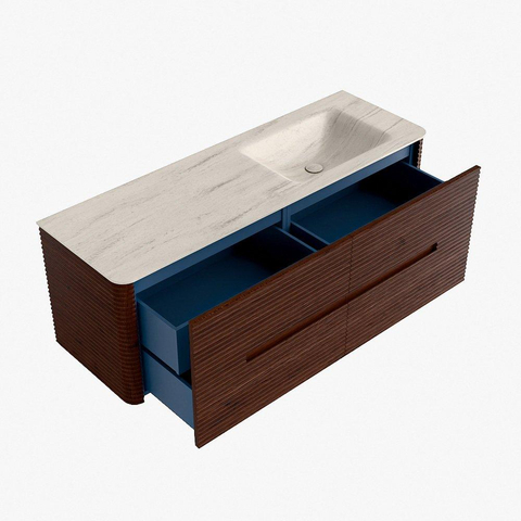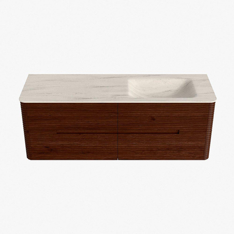 Mondiaz CIRO-DLUX Badkamermeubelset - 140x45x50cm - Solid surface wastafel Meli - 1 wasbak Rechts - 1 kraangat - 4 lades - Ruby