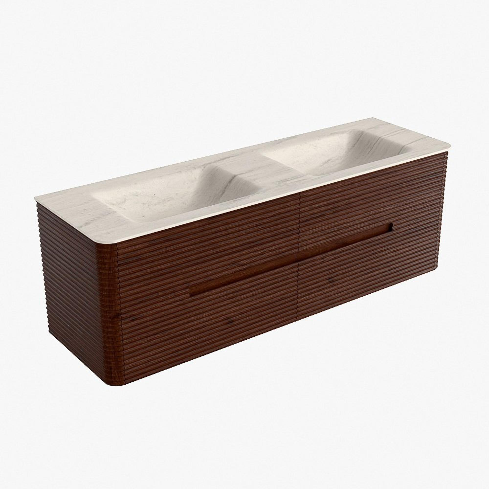 Mondiaz CIRO-DLUX Badkamermeubelset - 150x45x50cm - Solid surface wastafel Meli - 2 wasbak Dubbel - 2 kraangaten - 4 lades - Ruby