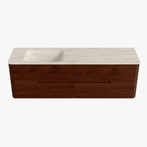 Mondiaz CIRO-DLUX Badkamermeubelset - 160x45x50cm - Solid surface wastafel Meli - 1 wasbak Links - 1 kraangat - 4 lades - Ruby