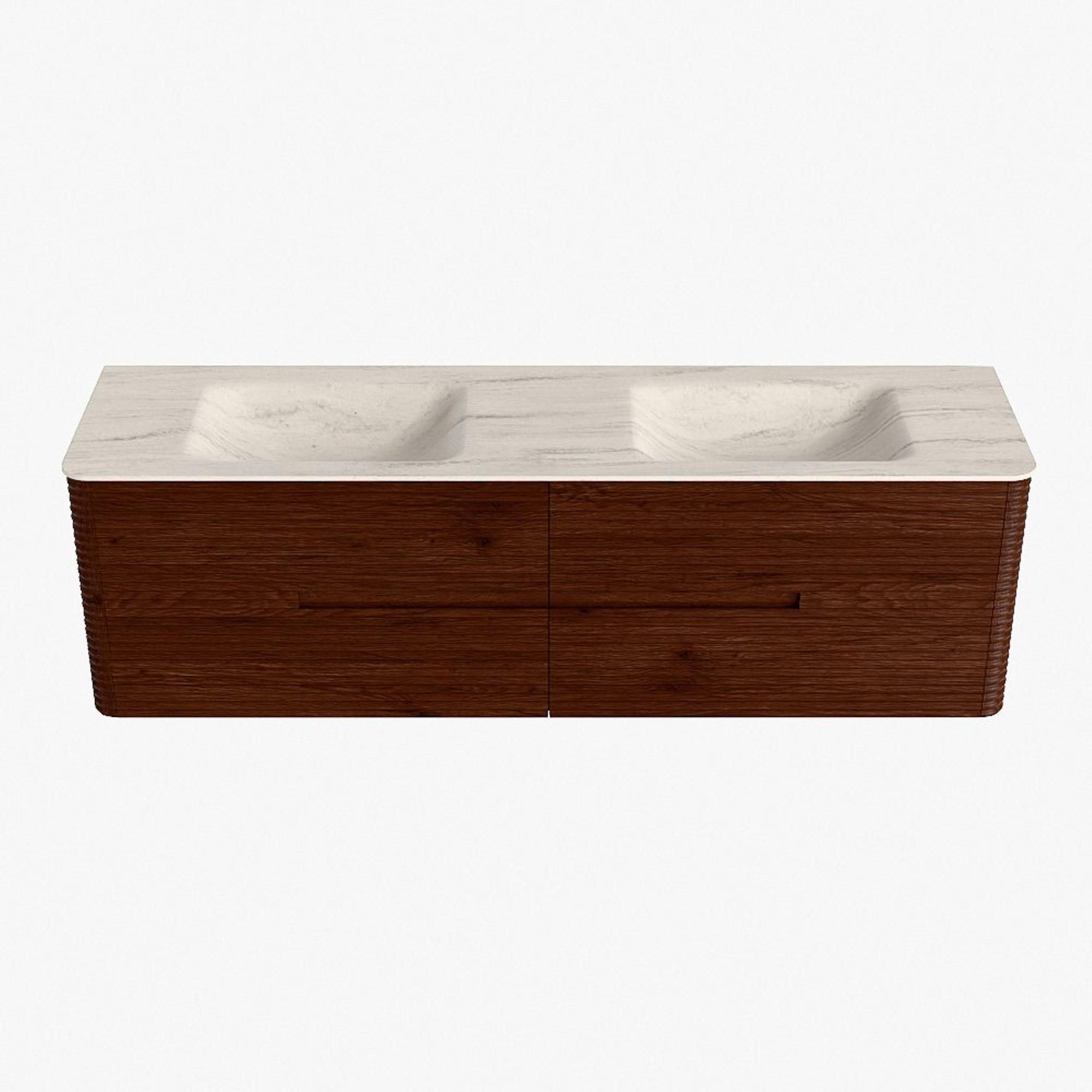 Mondiaz CIRO-DLUX Badkamermeubelset - 170x45x50cm - Solid surface wastafel Meli - 2 wasbak Dubbel - 2 kraangaten - 4 lades - Ruby