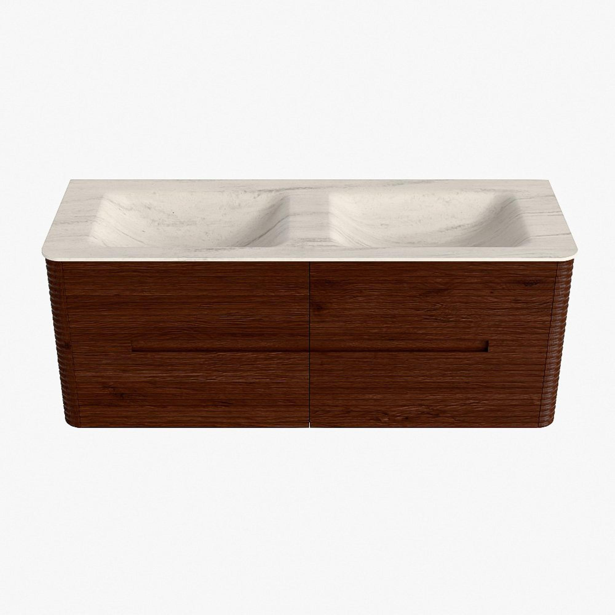 Mondiaz CIRO-DLUX Badkamermeubelset - 130x45x50cm - Solid surface wastafel Meli - 2 wasbak Dubbel - zonder kraangaten - 4 lades - Ruby