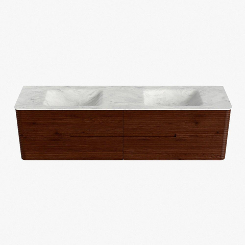 Mondiaz CIRO-DLUX Badkamermeubelset - 180x45x50cm - Solid surface wastafel Opalo - 2 wasbak Dubbel - 2 kraangaten - 4 lades - Ruby