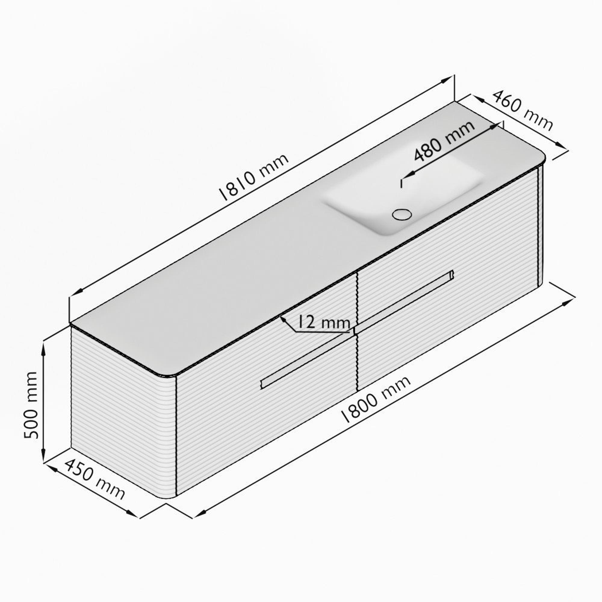- Breedte wastafel: 181cm