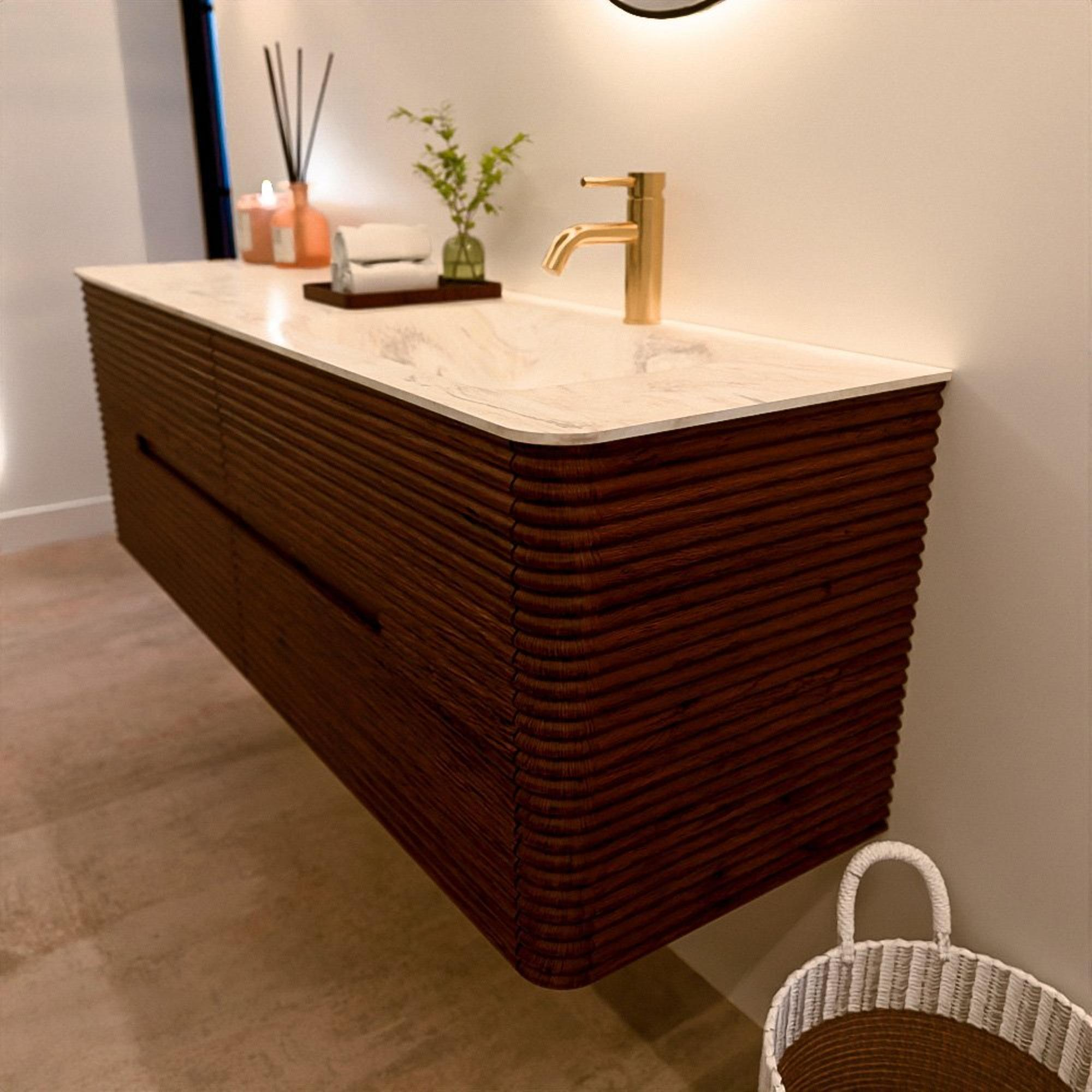 Het CIRO-DLUX badkamermeubel is ontwikkeld voor wie kiest voor modern design, natuurlijke materialen en hoogwaardige functionaliteit. Met maatvoeringen van 70 cm tot 190 cm past de CIRO-serie moeiteloos in zowel compacte badkamers als royale designruimtes. Elk meubel is een uitgebalanceerde combinatie van esthetiek, ambacht en duurzame kwaliteit.