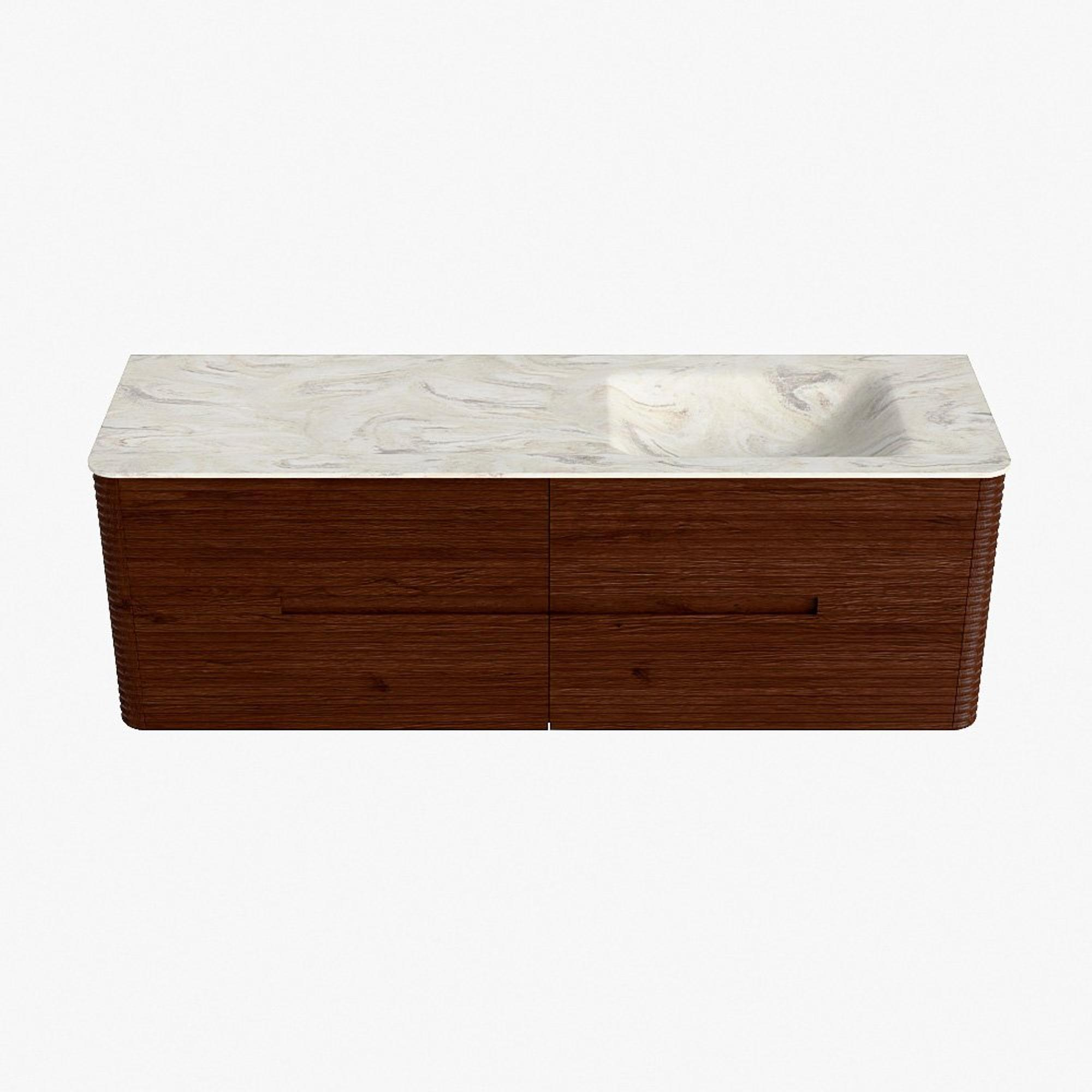 Mondiaz CIRO-DLUX Badkamermeubelset - 150x45x50cm - Solid surface wastafel Ostra - 1 wasbak Rechts - 1 kraangat - 4 lades - Ruby