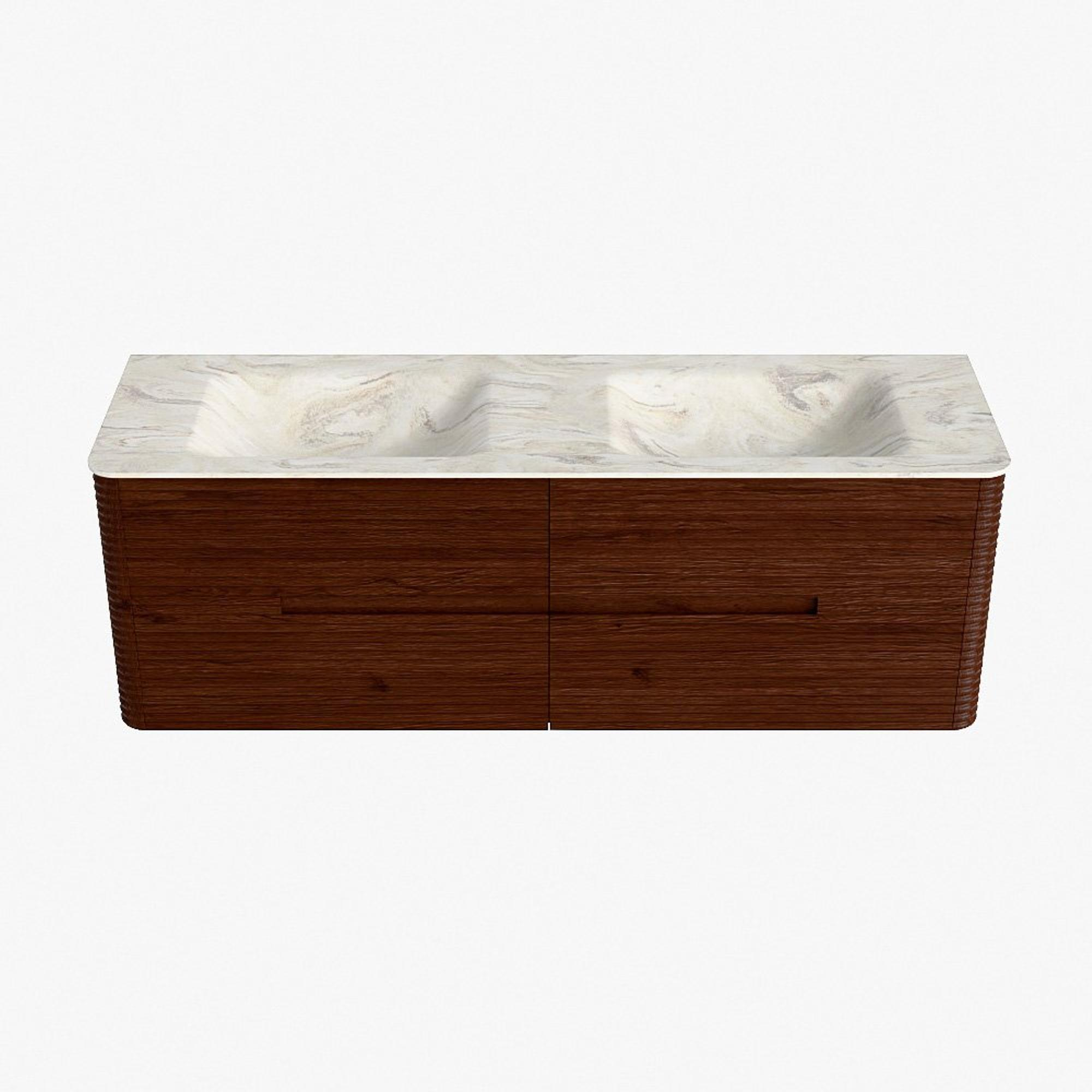 Mondiaz CIRO-DLUX Badkamermeubelset - 150x45x50cm - Solid surface wastafel Ostra - 2 wasbak Dubbel - zonder kraangaten - 4 lades - Ruby