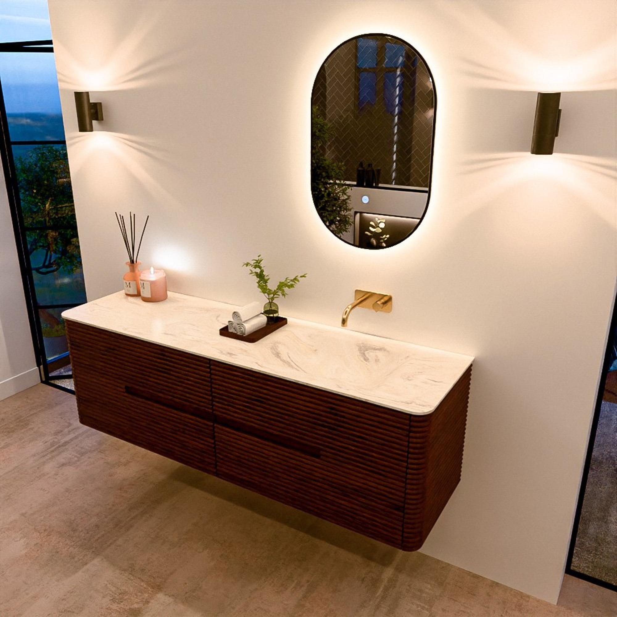 Het CIRO-DLUX badkamermeubel is ontwikkeld voor wie kiest voor modern design, natuurlijke materialen en hoogwaardige functionaliteit. Met maatvoeringen van 70 cm tot 190 cm past de CIRO-serie moeiteloos in zowel compacte badkamers als royale designruimtes. Elk meubel is een uitgebalanceerde combinatie van esthetiek, ambacht en duurzame kwaliteit.