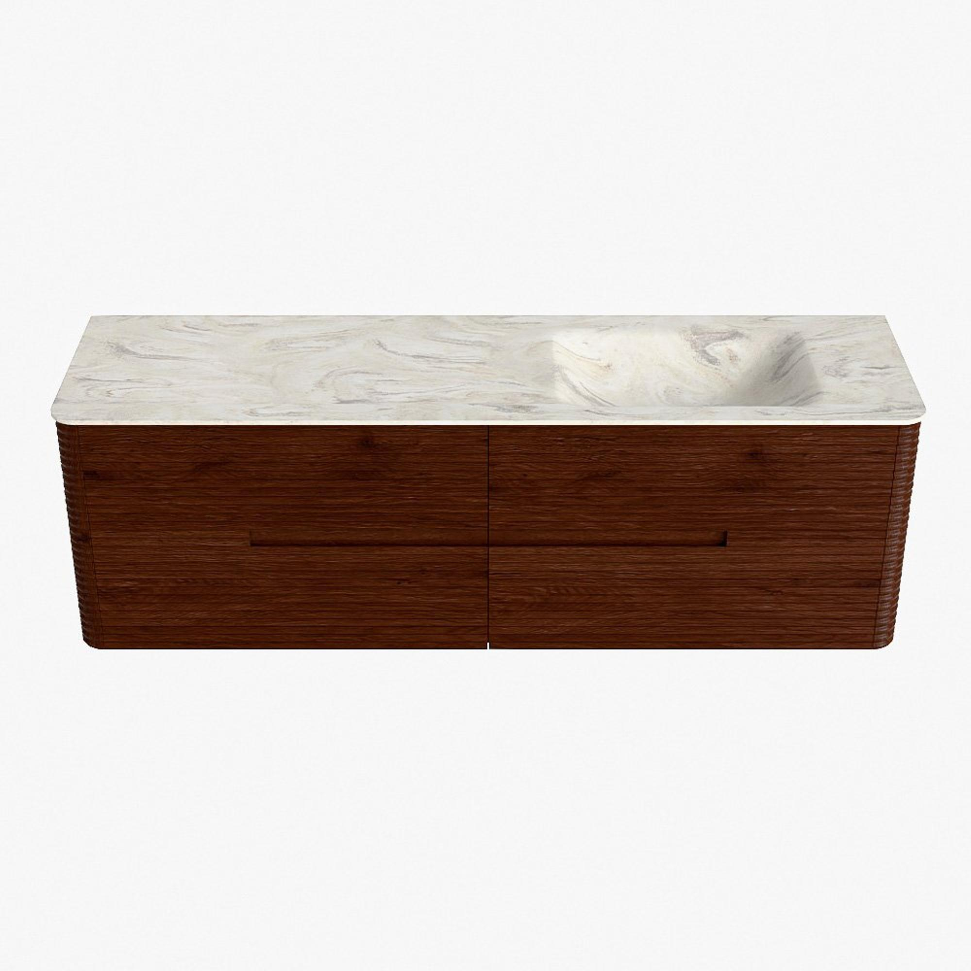 Mondiaz CIRO-DLUX Badkamermeubelset - 160x45x50cm - Solid surface wastafel Ostra - 1 wasbak Rechts - zonder kraangaten - 4 lades - Ruby