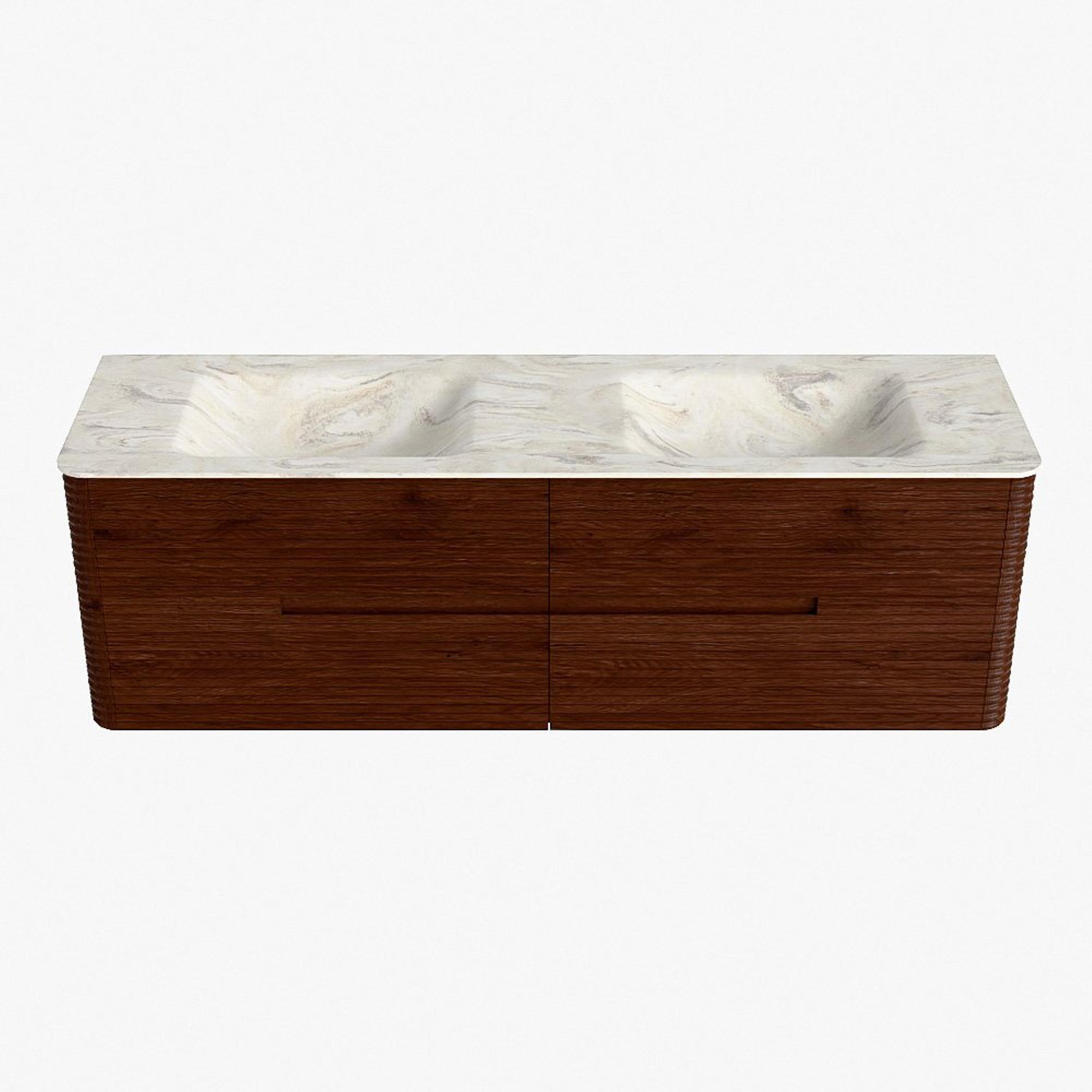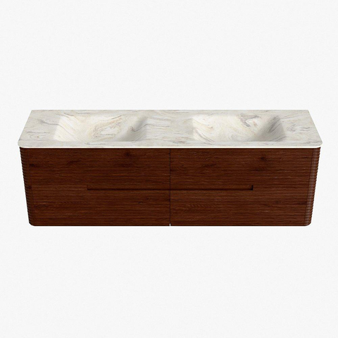 Mondiaz CIRO-DLUX Badkamermeubelset - 160x45x50cm - Solid surface wastafel Ostra - 2 wasbak Dubbel - 2 kraangaten - 4 lades - Ruby