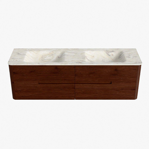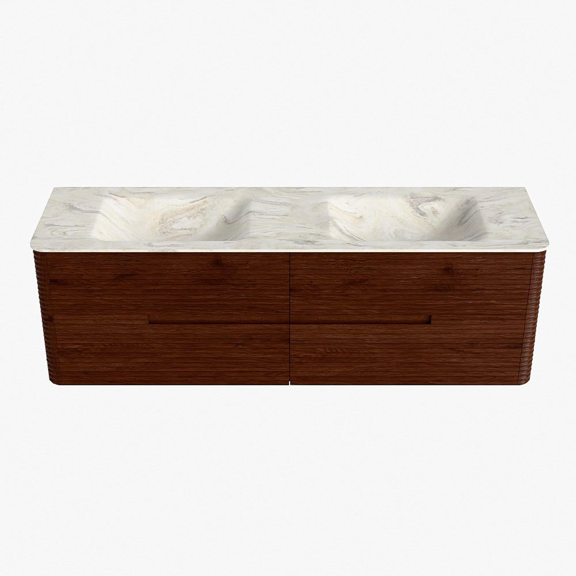 Mondiaz CIRO-DLUX Badkamermeubelset - 160x45x50cm - Solid surface wastafel Ostra - 2 wasbak Dubbel - zonder kraangaten - 4 lades - Ruby
