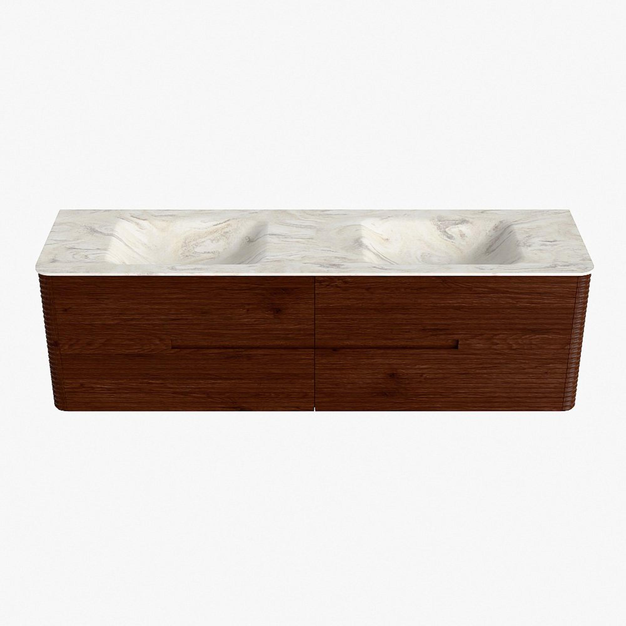 Mondiaz CIRO-DLUX Badkamermeubelset - 170x45x50cm - Solid surface wastafel Ostra - 2 wasbak Dubbel - zonder kraangaten - 4 lades - Ruby
